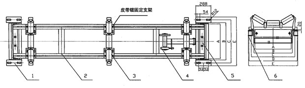 | 1:承重架 2:稱重橋 3:托輥架及托輥 4:測速機構(gòu)及測速傳感器 5:荷重傳感器 6:皮帶輸送機并配有JL500B稱重控制儀表 | |||||||||||||||||||||||||||||||||||||||||||||||||||||||||||||||||||